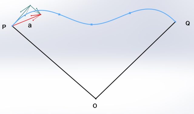 O点からみたP点での瞬間の加速度はやはり方向と大きさをもったベクトルであらわせます。
