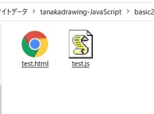 エクスプローラーの画像です。同じフォルダーにhtmlファイルとスクリプトファイルが並んでいますね。
