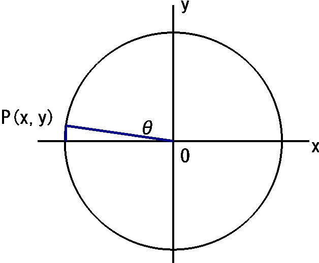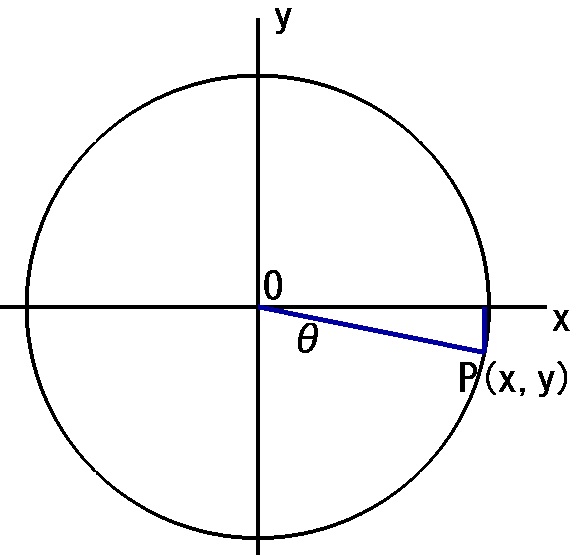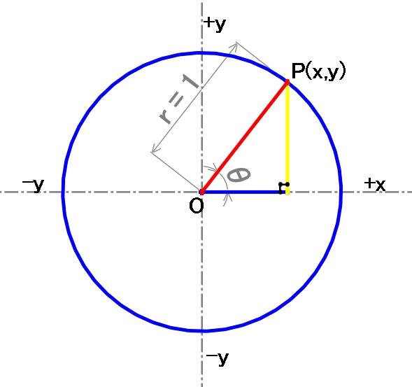 三角関数表を見るとsin、cos、tanは全て角度だけできまります。半径のrは1にしても比率の変更がありません、つまり三角関数はr=1でも同じ値が得られるということです。