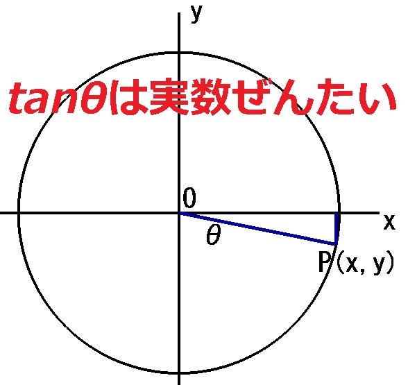 「tanθ」の値の範囲はどこからどこまででしょうか。