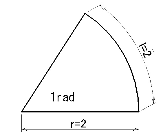 単位半径とか単位円弧とか書いちゃいましたが、弧度法は単なる半径と円弧の比率を角度にしているだけですので、単位半径→1、単位円弧→1じゃなくても問題がありません。