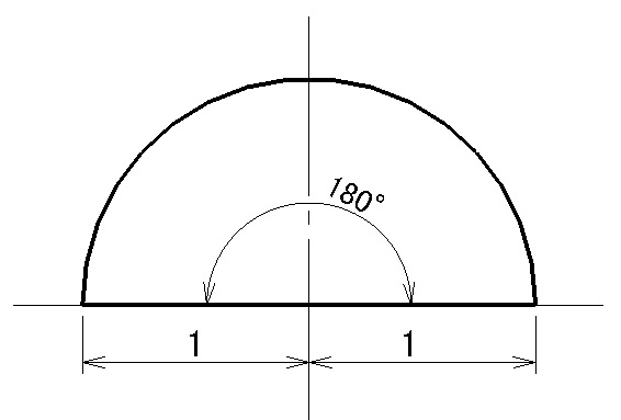 度数法の角度が180°で半径が1の場合、弧度法の角度を求めてみましょう。